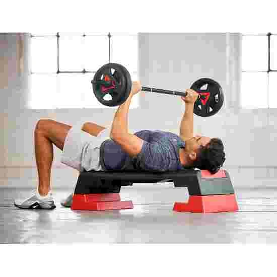For cardio, strength and core training. Comes with instruction manual. Wipe-clean, moisture-resistant training surface. Three levels of height adjustment. 86% PP, 13.6% TPR and 0.4% ABS. LxWxH: 102×38.5×15/20/25 cm. Max. load: 120 kg. 7.2 kg.