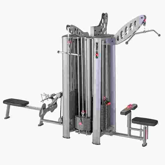 The Sport-Thieme “OV” 4-station tower is a real all-rounder – it features stations for horizontal lat pull, vertical lat pull, triceps and duplex and thus combines several exercises in one machine. These training elements allow you to effectively strengthen your arm and shoulder muscles. Particularly practical: several people can work out at the same time – ideal for use in the gym. The tower’s high-quality workmanship and use of robust materials are yet more advantages for fitness centres. The well-padded seat and leg pads are height-adjustable – so you can adapt them to suit you. You can also adjust the weight plates to your level of fitness using the locking pin. What’s more, the interchangeable grips provide a varied workout.